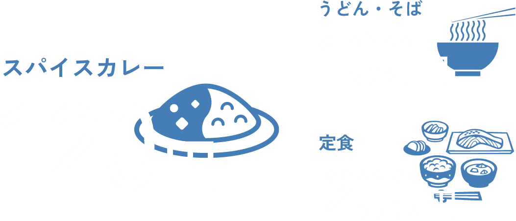 定食、カレー、麺、